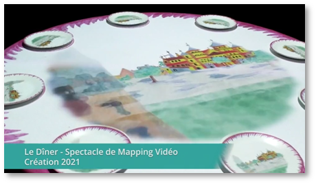 Or with Le Dîner at the Musée de la Faïence in Sarreguemines: an animated historical fresco mapped onto plates, designed with the Manufacture du Patrimoine from a rich iconographic collection.